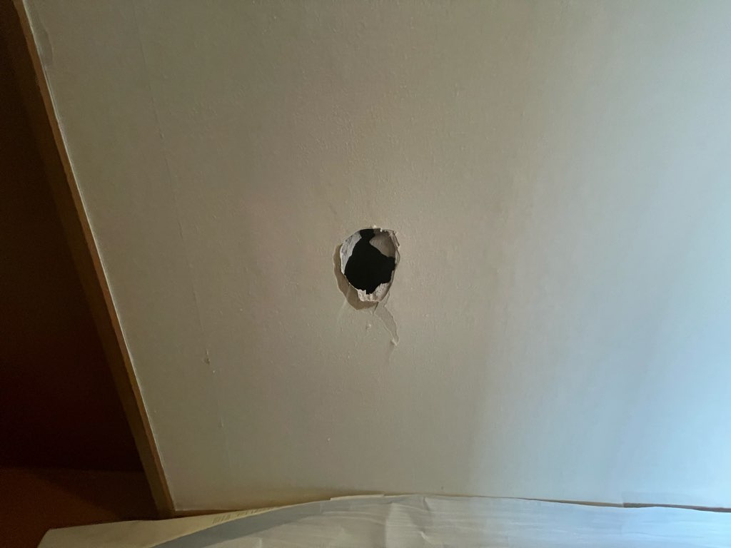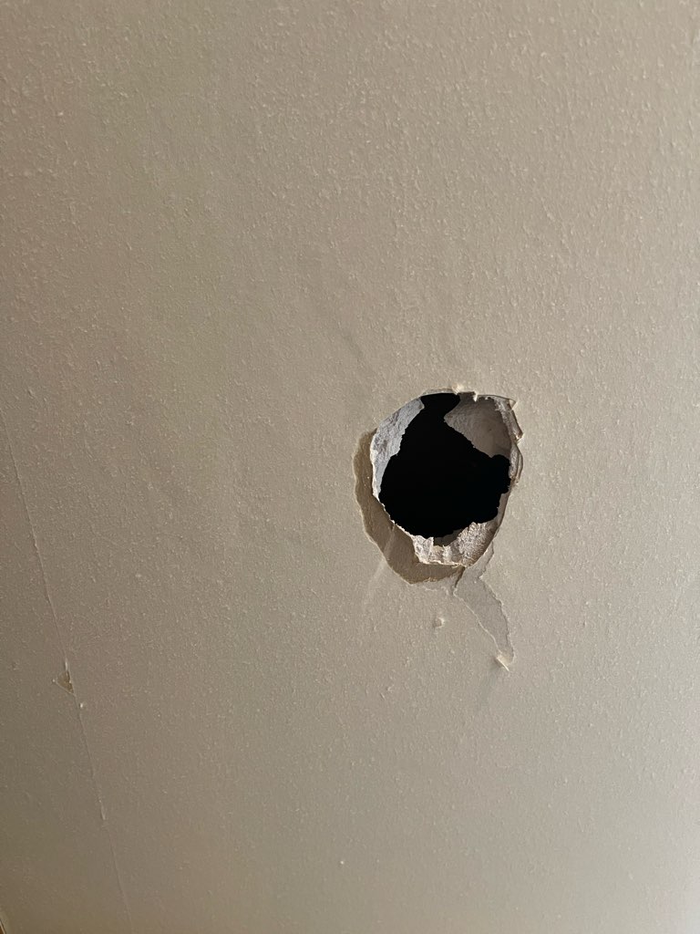 家族の誰かがよろけて、肘や膝でぶち抜いたり・・