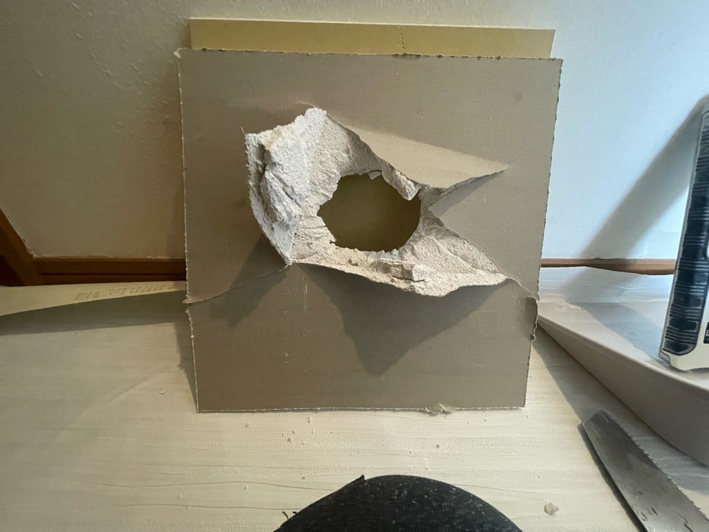 あとは、この開けたサイズで新しいボードをカットして収めます。